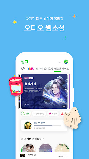 Been using 올해를 빛낸 자기계발 앱 – 윌라 for a couple months now. It’s basically an app with a ton of audiobooks, ebooks, web novels, and even online classes. Pretty solid if you’re into self-improvement and reading.