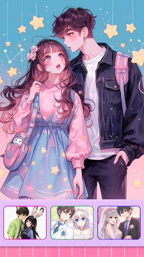 Here’s what you do: you customize two characters on the same screen to make the perfect couple. There’s a ton of options – you can pick different poses like holding hands or hugging, add romantic backgrounds and sparkles, and really make it your own. It’s got a lot of customization without being too complicated.