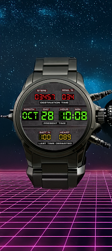 Been using the Back to the Future WatchFace for a couple months now. It’s basically a Wear OS watch face that captures the look and feel of the iconic 80s sci-fi movies. The digital display has a cool retro vibe, kinda like the DeLorean dashboard. There’s a date display that shifts between past, present, and future, plus it shows your steps, heart rate, and battery level. Definitely a fun option for fans of the movies.