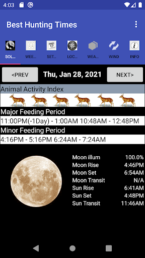 I’ve been using Best Hunting Times for a couple months now. It’s basically an app that gives you all the info you need to plan the best times to go hunting. Like, there’s solunar data for major and minor feeding periods, moon phases, sunrise/sunset times – basically everything to help you maximize your chances of seeing some game.