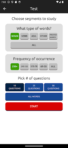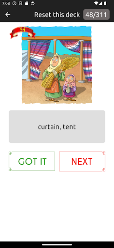 Here’s what you do: you can study the words by how frequently they appear or by the type of word. There’s also a test mode where you can quiz yourself on the vocab. And the app has these cool illustrations for most of the words – helps you remember them better.