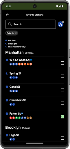 Here’s what you do: there’s a widget that shows the arrival times for stations and stops near you. And it’s got a favorites section too, so you can just see the stops you use most often. Plus you can get service alerts – just tap on a line to see if there are any delays or issues. There’s also a station locator, so you can quickly open a stop in Maps.