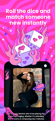 Here’s what you do: you can just roll the dice and get instantly matched with someone to start a live text chat. And there’s also an album feature where you can share photos if you want. And you can keep your real identity private the whole time – you just use a unique avatar.