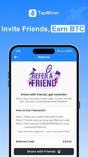 Here’s what you do: you buy some cloud mining power, then the app automatically mines BTC for you around the clock. There’s also a referral system where you can earn more by getting friends to join. It’s got all the basic features you’d expect, though the UI could use some polishing.