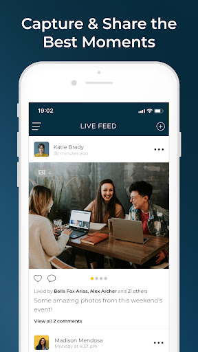 Here’s what you can do: there’s a feed with all the event details, announcements, and who’s coming so you can stay up-to-date. And you can also chat with other attendees, share photos, and even create your own events through the app. It’s got a lot of handy features to make sure you Experience Every Moment.