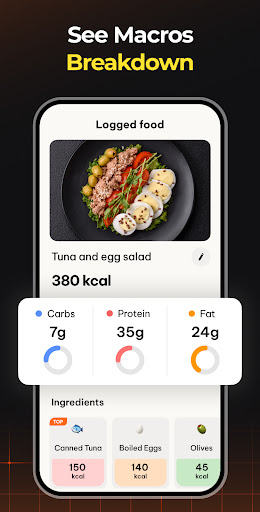 Here’s what you do: just snap a photo of your meal and the AI will analyze it and give you a full calorie and macro breakdown. And there’s also a database of common foods, so you can look up info too. And you can set personal calorie and nutrition goals – the app gives you insights on your progress, almost like having a nutrition coach.