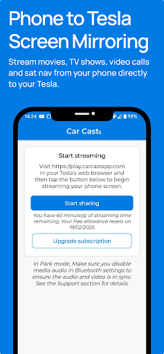 Been playing Car Cast – Screen Mirror for a couple months now. It’s basically an app that lets you mirror your phone’s screen to your Tesla’s display. Pretty solid if you wanna watch movies, join video calls, or use a different navigation app instead of Tesla’s built-in one.