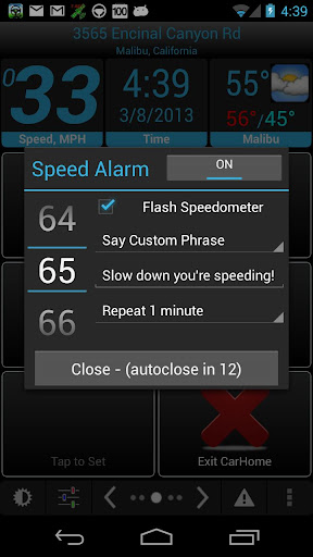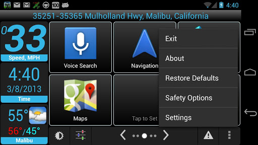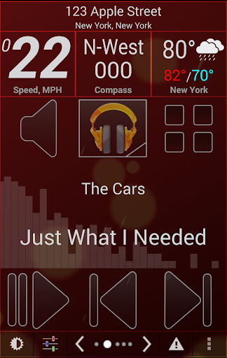 Here’s what you do: You can customize all sorts of shortcuts to launch apps, call people, or navigate to locations. And there’s also a built-in media controller – it’s got big buttons to control your music or podcasts. And the data widgets are cool, you can see your speed, location, weather, all that.