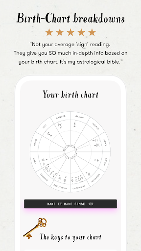 Here’s what you can do – there’s a detailed birth chart that breaks down where all the planets and stuff are positioned, which is pretty cool. And the daily horoscopes are actually pretty useful, they outline how the current astrology is gonna impact you. It’s got some other features too like moon phases and meditations, though I don’t use those as much.