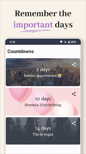 I’ve been using Countdown – Days Until for a couple months now. It’s basically a friendly little app that helps you keep track of all your important dates – birthdays, anniversaries, exams, vacations, you name it. Pretty solid if you’re into that kind of thing.