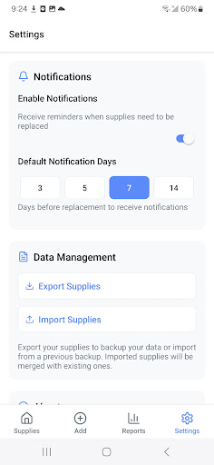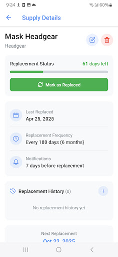 Here’s what you do: You can add all your supplies to the app and set replacement reminders. There’s also a history feature that shows when you last changed each item. Kinda nice to have it all in one place instead of guessing when to buy new parts. And the privacy thing is cool – it stores everything on your device, not in the cloud.