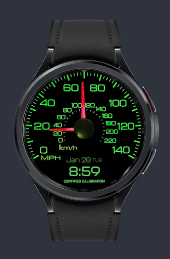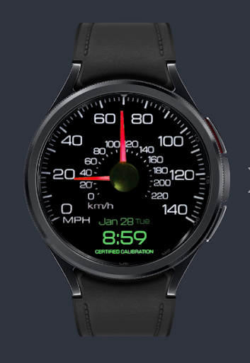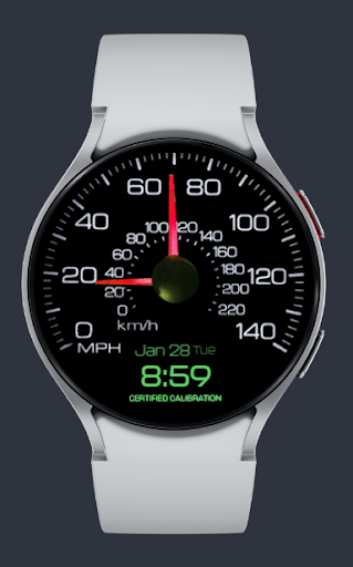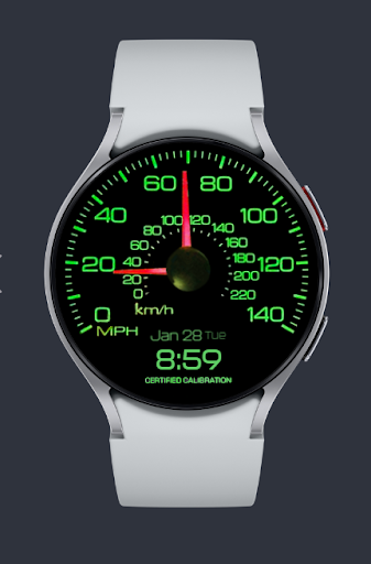 Here’s what you do: you can choose between two different speedometer styles to use as your watch face. And there’s also an option that’s got regular clock numbers on the speedometer – took me a while to figure that out but it’s a nice touch. And the graphics look pretty slick, runs smooth even on my older smartwatch.