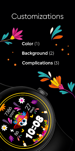 Here’s what you can do – there’s a bunch of different sugar skull and flower backgrounds to choose from, plus you can customize the color scheme. And it’s got the basic stuff like time, date, and step tracking too. Took me a while to figure out how to add complications and shortcuts, but once I got it set up it works great.