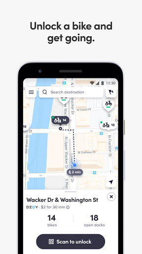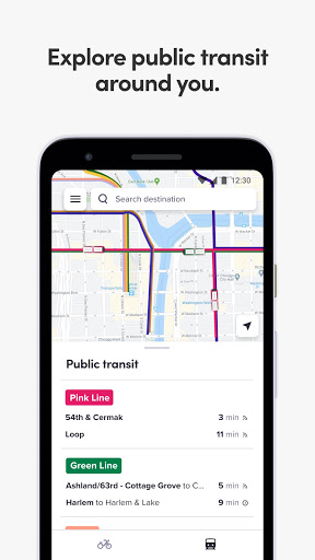 Here’s what you do: You can unlock bikes at any Divvy station and ride them to your destination, then just drop the bike off at another station. And there’s also a trip planning feature which is pretty cool. And you can see transit schedules like buses and trains – that’s useful for figuring out the best way to get around.
