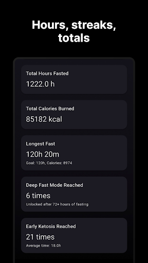 The best part is the smart reminders – it’ll give you a gentle nudge when you reach your goal, or if you’re going on a good streak. There’s also some basic stats to track your longest fast and weekly totals. And you can set your own custom fasting targets too, not just the popular presets.