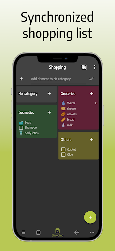 Here’s what you do: there’s a calendar where you can add tasks, events and a schedule for the whole family. It’s got reminders too so you don’t miss important stuff. And the shopping lists – you can sync them across devices and mark off stuff as you go. You can even add quantities and units. Plus there’s a recipe section with a meal planner.