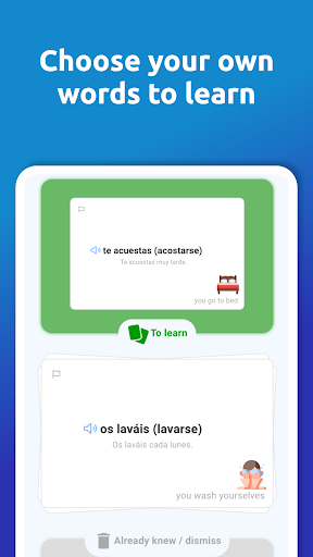 • Flashcards with spaced repetition algorithm help you learn words efficiently