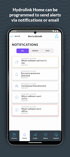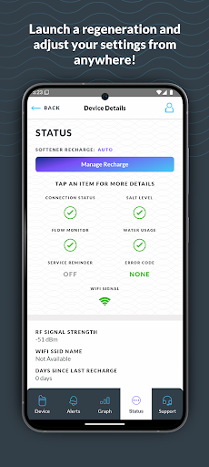 The main thing you can do is check all the important stats – like how many days until you need to refill the salt, your average daily water usage, and stuff like that. And you can even start a regeneration cycle or adjust the settings right from the app. There’s also alerts and diagnostics you can set up to let your local EcoWater dealer know if anything’s up.