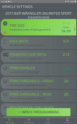 Here’s what you do – you connect the app to your car using this ECRI wireless device, and then you can check out all the current calibrations like your tire size and speedometer. It’s got an easy way to write new calibrations too, which is super useful. And there’s this cool GPS feature that can automatically calibrate your speedometer, that took me a while to figure out but it’s great.