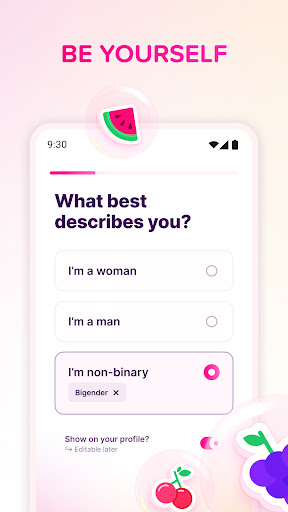 Here’s what you do – you pick a fruit that represents what you’re after. There’s also profile prompts and stuff to help you find compatible matches. It’s got a swiping mechanic like Tinder, but you only see people who want the same thing as you. Took me a while to figure that out but it’s actually really useful.