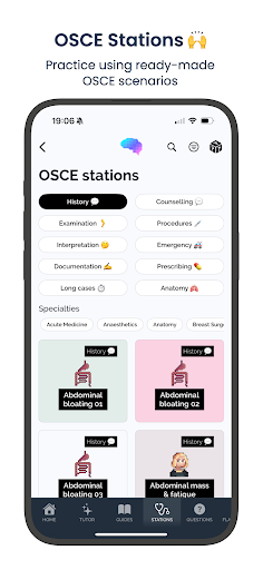 Here’s what you do: you can practice with over 1200 OSCE station scenarios, which is great for getting used to the format. There’s also 200+ guides that walk you through procedures with images and checklists. And the virtual patient feature is really cool – you can do fake consultations with AI and get feedback. It’s got a ton of stuff to help you study.