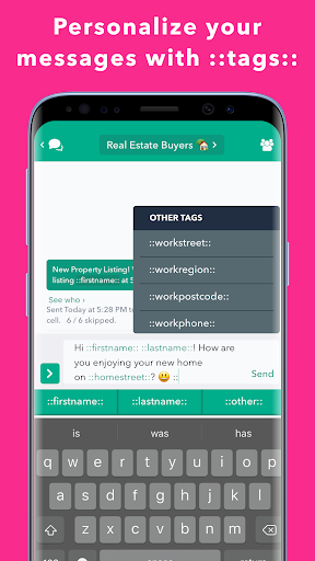 Here’s what you do – you just import your contacts and then you can craft one message and send it out to everyone. And there’s also a feature where you can personalize each message, which is pretty cool. And you can schedule messages to go out later, in case you want to blast something out on a specific day or time.