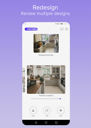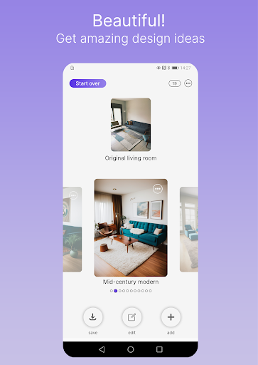 Here’s what you do: You take a photo of the space you want to redesign, choose a design style, and the app generates AI-powered design ideas for you. And there’s also a bunch of premade room designs you can browse through. And you can save your favorite designs to come back to later – super handy.