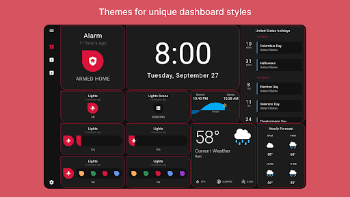 Here’s what you can do – there’s a bunch of different widgets you can add to your dashboard, like weather, security cameras, lighting controls, and more. It’s got easy integrations with platforms like Home Assistant and Alexa, so you can sync up all your smart home gadgets. And the personalization options are pretty cool – you can use different themes to make the dashboard look how you want.