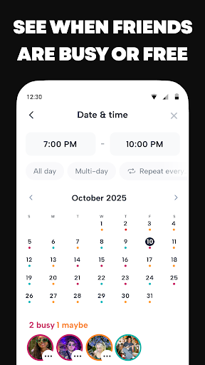 So here’s what you can do with it: create events, share them with friends, and see what everyone’s up to in this really clean timeline view. You’ve got these cool color-coding options for different types of events, and it’s pretty easy to coordinate hangouts without the usual back-and-forth texting. Plus, you can see when your friends are free without having to ask them fifty times.