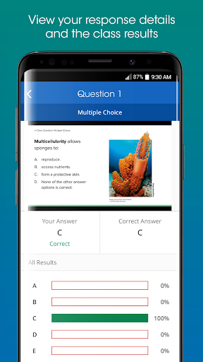 Here’s what you do – the teacher asks a question and you tap your answer on your phone. Then you can see how your vote compares to the rest of the class. There’s also a history feature where you can review the questions later. It’s got multiple choice, short answer, all that good stuff.