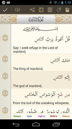 The app is neat. The font is beautiful, and supports colored Tajweed. I know the Persian translation is good as it is from a well known Aalim. The last two...
