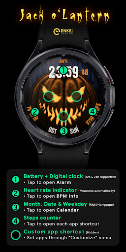 Here’s what you can do: there’s a digital clock and battery indicator, plus some subtle animations like the pumpkin’s eyes blinking. It’s got app shortcuts too so you can quickly access your most used apps. Took me a while to figure out all the features but they’re pretty useful.