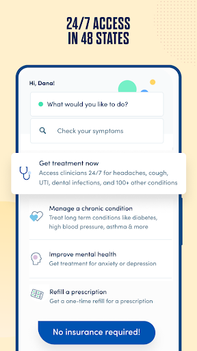Here’s what you do: you can check your symptoms through the app and it’ll compare your case to millions of real patient records. There’s also the ability to chat with a licensed provider and get prescriptions if needed. It’s got a flat monthly fee which is nice – no insurance required.