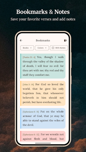 • Tons of powerful study tools like bookmarks, notes, and verse sharing
