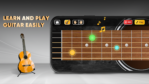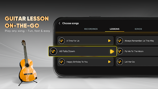 Here’s what you do: you can pick from a ton of different songs and learn to play them by following the tabs and chords. And there’s also a built-in tuner which is super handy. And the audio recording feature is kinda cool – it’s like having a little garage band right on your phone.