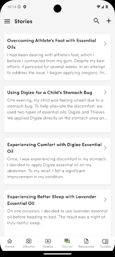 The app’s got a bunch of different sections – there’s the Resources area where you can find info on specific oils and how to use ’em. And the Stories section has real testimonials from people sharing how the oils have helped them. It’s actually pretty cool, feels like a little community.