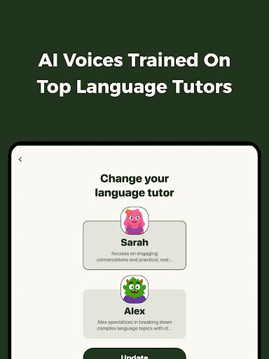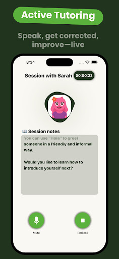 Here’s what you do: you can chat with the AI tutor and it’ll go through lessons with you, explain tough concepts, and help you practice. And there’s also interactive voice calls – you can have real-time conversations to work on your speaking. And the app adapts to your pace, so you can take your time or move through things quickly.