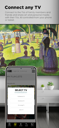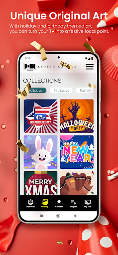 Here’s what you do: you can browse curated art collections or playlists, and even upload your own photos and videos to turn your TV into a connected picture frame. There’s also cool birthday and holiday animations – great for setting the mood. And the app’s got a library of over 6,000 pieces of art, from paintings to photographs.