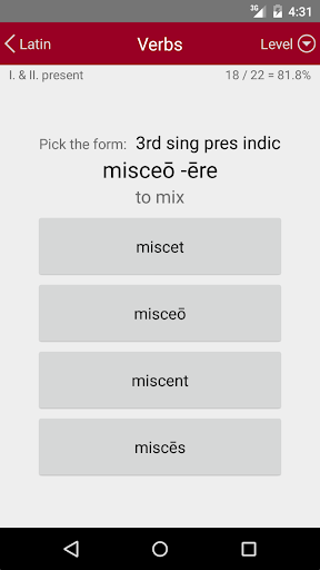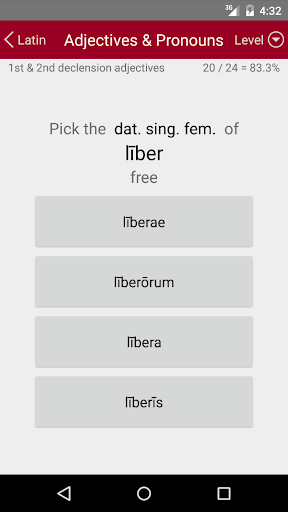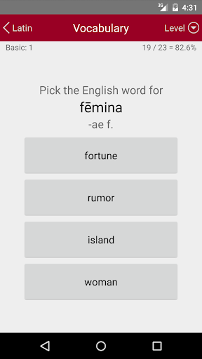 Here’s what you do: there’s a bunch of multiple choice questions that test your translation skills between Latin and English. And it’s got different sections for basic vocab, the Aeneid, Cicero, and more advanced words. And you can track your progress as you level up – takes some time to get through it all but it’s a great way to practice.