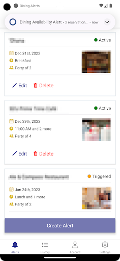 Here’s how it works: you pick the restaurant, date, time, and party size, and the app gets to work. There’s also a handy dashboard that shows all your tracked reservations. And if you’ve got some backup dates or times in mind, you can set multiple alerts – pretty cool. Took me a while to figure out all the settings but it’s pretty straightforward once you get the hang of it.