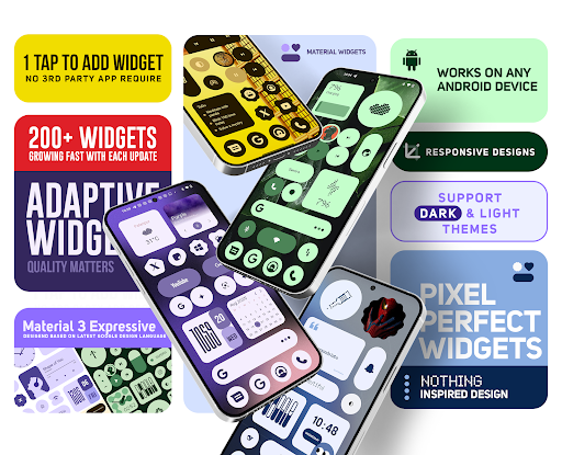 Here’s what you do: you can pick from over 200 different widgets and just tap to add them. And there’s also a bunch of customization options – you can adjust the colors, shapes, sizes, and more. And the widgets are all built on Google’s Material 3 design, so they look really clean and modern.