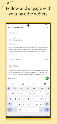Here’s what you can do – you can follow your favorite writers and publications, get personalized recommendations based on what you like, and even join discussions in the comments. There’s also options to highlight passages, bookmark stories, and create reading lists. Took me a while to figure some of that out but it’s useful.
