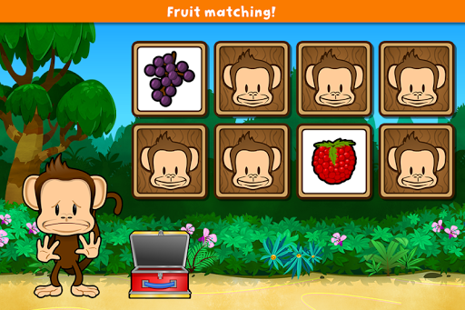 Here’s what you do: you play through different games like matching shapes, finding differences, and identifying letters. And there’s also a cute animated monkey that helps guide the kids along. And the games flow right into each other – no confusing menus or anything like that.