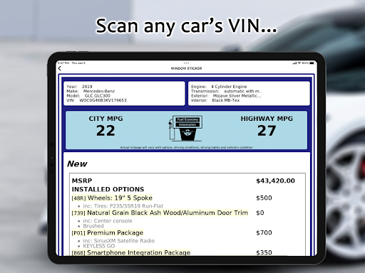 Here’s what you do: you just enter the VIN number or scan it with your phone camera, and the app pulls up the Monroney label. There’s also a full VIN decoder, which is pretty cool. And the reports are really detailed – it’s got all the original specs, options, prices, and more. Took me a while to figure out all the different features but it’s super useful.