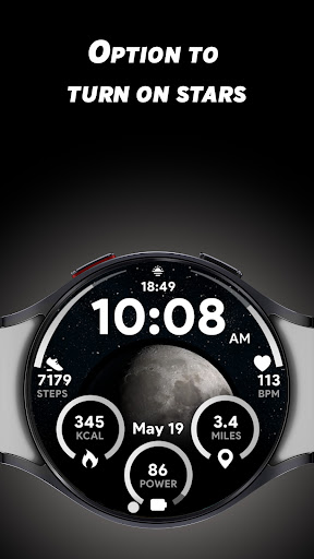 Here’s what you do: there’s a big moon icon that shows the current moon phase. And you can also turn on a starry night effect, which looks pretty cool. And there are 5 custom complications you can use to add extra info like battery, steps, and so on. Took me a bit to figure all that out but it’s pretty useful once you get the hang of it.