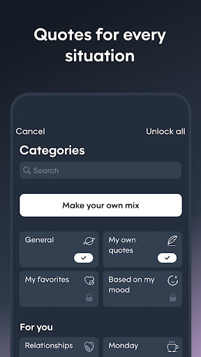 Here’s what you do: you can browse through a bunch of motivational quotes and save your favorites. There’s also a feature where it sends you a new quote every day as a notification. And you can even use the app as a quote maker to share your favorite quotes on social media – pretty cool.