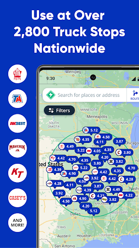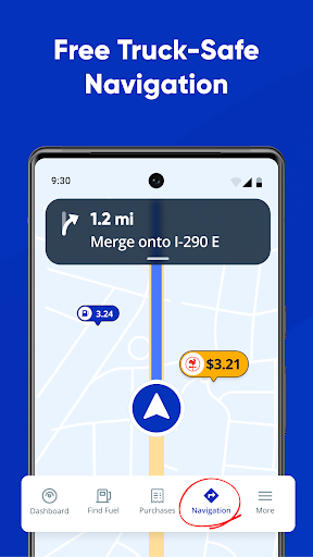 Here’s what you do: You can find discounted diesel at over 2,800 truck stops across the US. There’s also free GPS navigation that’s designed for trucks – it’ll route you around low bridges and weight limits. And you can connect your card to get savings codes right in the app, no hassles.