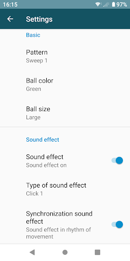 There’s all kinds of settings you can play with – you can choose the movement pattern, color and size of the ball, background color, and sound effects. And you can even set it to random or surprise effects. The simple interface makes it pretty user-friendly, so it works well for kids too.