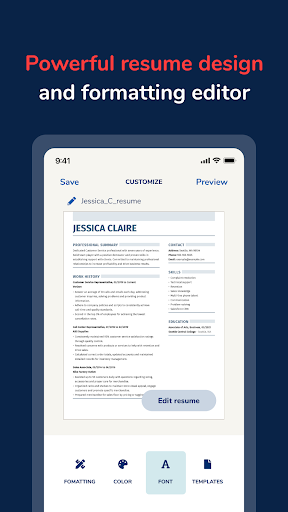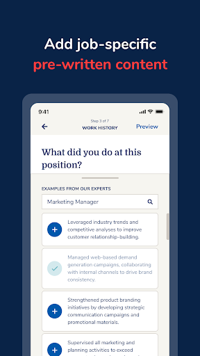 There’s a ton of pre-written resume bullet points for different job types, so you don’t have to stress about coming up with the right wording. You can just customize them to fit your experience. And the app gives you tips and guidance along the way to make sure your resume is looking sharp.