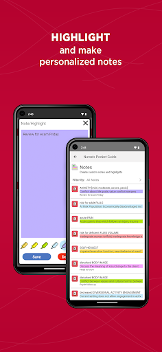There’s a ton of info in here – over 400 medical conditions with associated nursing diagnoses. You can browse by diagnosis or just search for symptoms and it’ll link you to the related stuff. And it’s got all the key details like definitions, related factors, characteristics, interventions, and documentation guidelines. And there are some handy features too, like the ability to highlight and make notes.